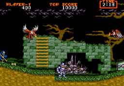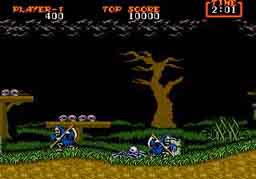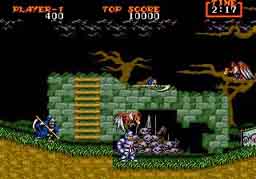 Ghouls And Ghosts is a VERY difficult game. It's fun for a while, but after playing it for 30 min or so it becomes quite boring. You are a knight and you have to kill legions of Ghouls and Ghosts to survive. They just pop up from the ground so watch out. If you like challanges maybe you'll like this game... For a while at least.